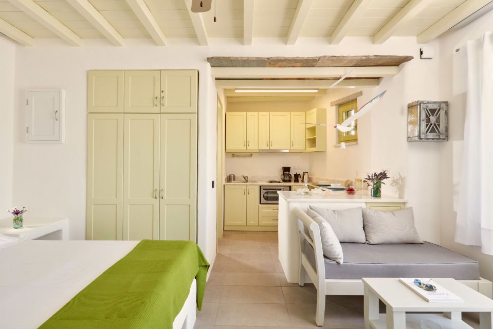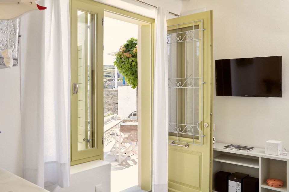Imagine strolling through the labyrinthine, vaulted passageways of Tripotamos, admiring the white-washed houses and the vibrant flowers that adorn the cozy courtyards. Our Cozy Courtyard Studio captures the essence of this traditional village, offering a peaceful, slow-living home for your Tinos escape.