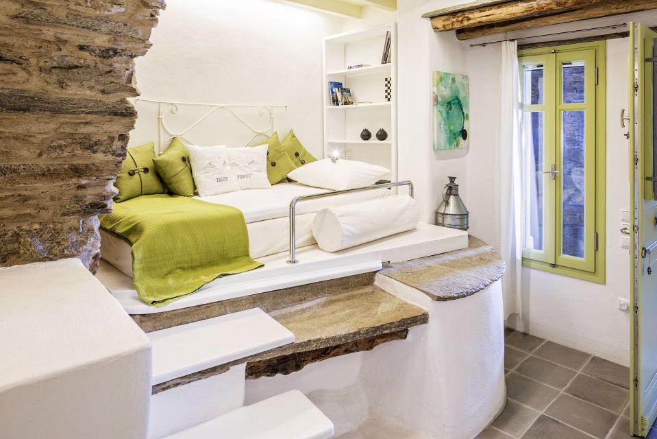 This charming retreat (42 m²), nestled in the heart of our countryside boutique hotel in the traditional village of Tripotamos, offers a glimpse into the island's rich history. It provides a comfortable escape for couples seeking a romantic getaway, groups up to three, or a 3-member family vacation in Tinos.